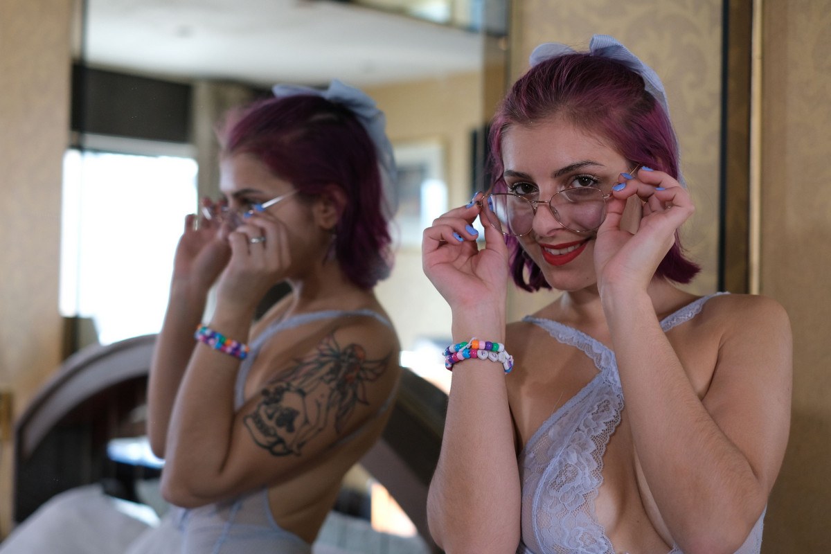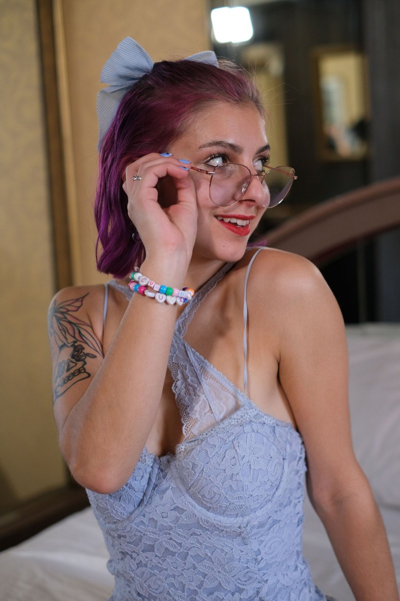 Purple Haired Princess Victoria In White Stockings Together With Le Pinch
