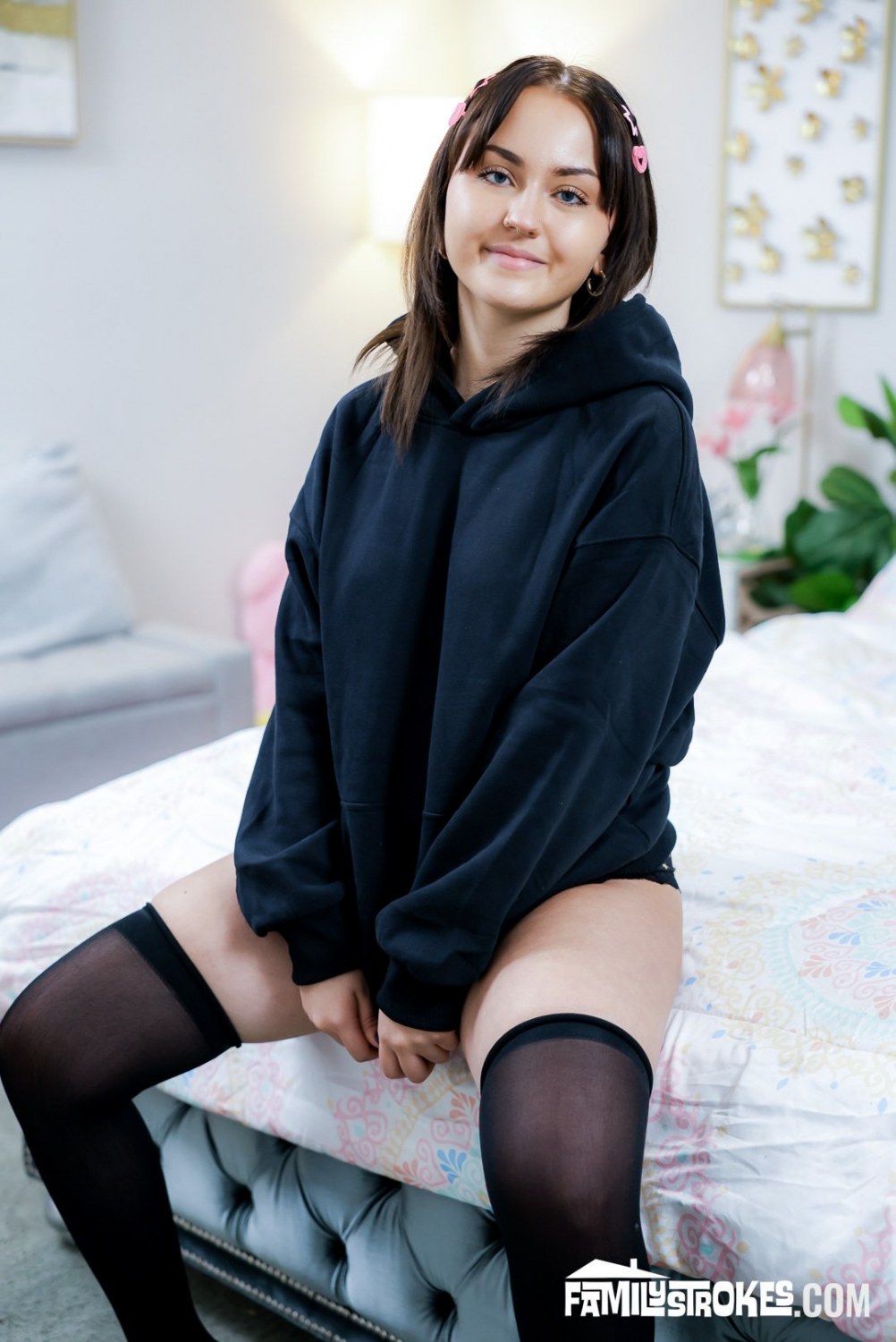 Cute Brunette Angel Cake In Black Stockings Gets Fucked On Bed By Quinton James