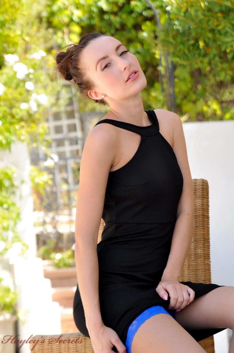 Beautiful Sophia Smith Teases On The Patio In A Black Dress And Stockings
