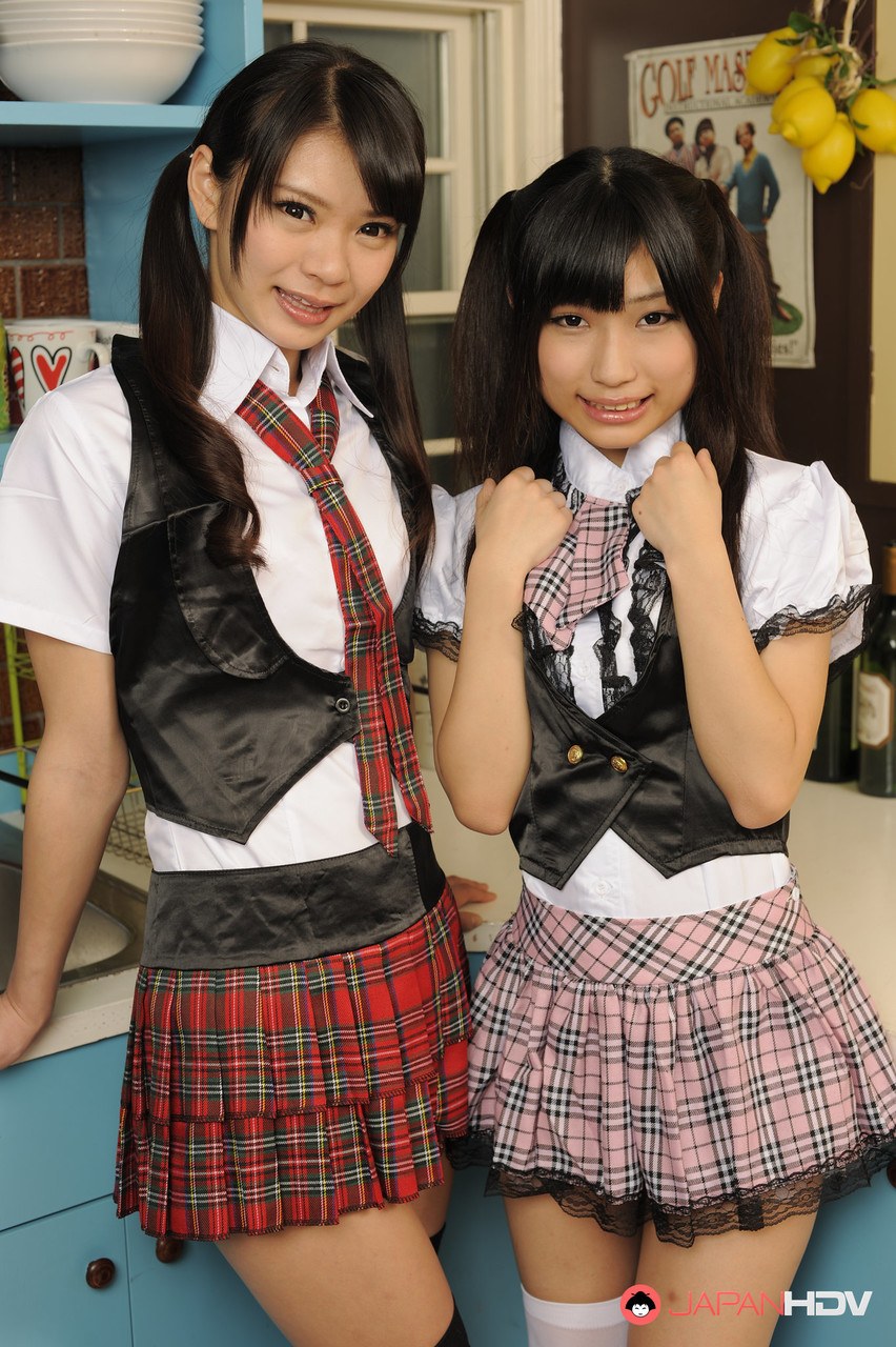 Cute Japanese Girls Akubi Yumemi And Runa Kobayashi In Sexy Skirts And Stockings
