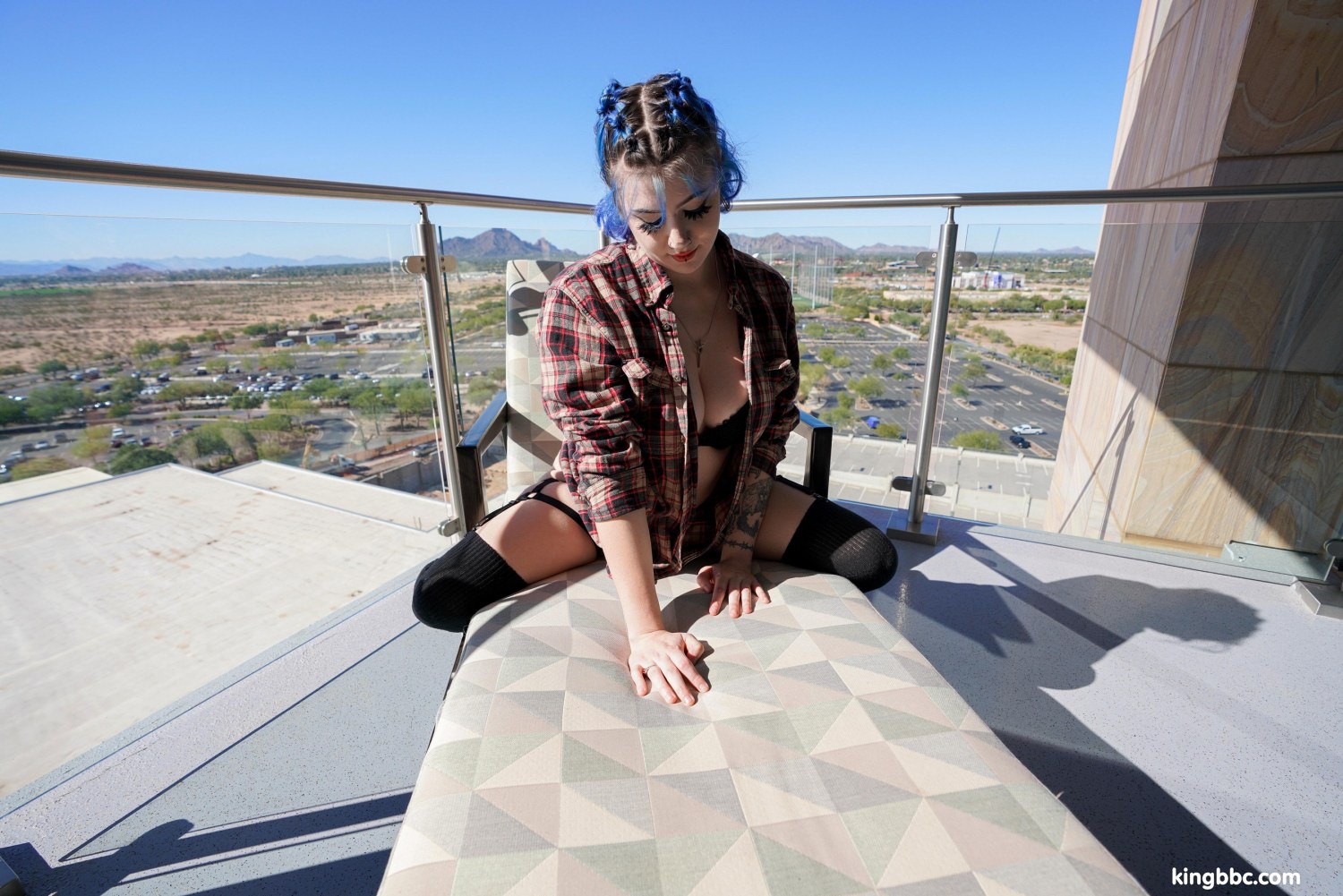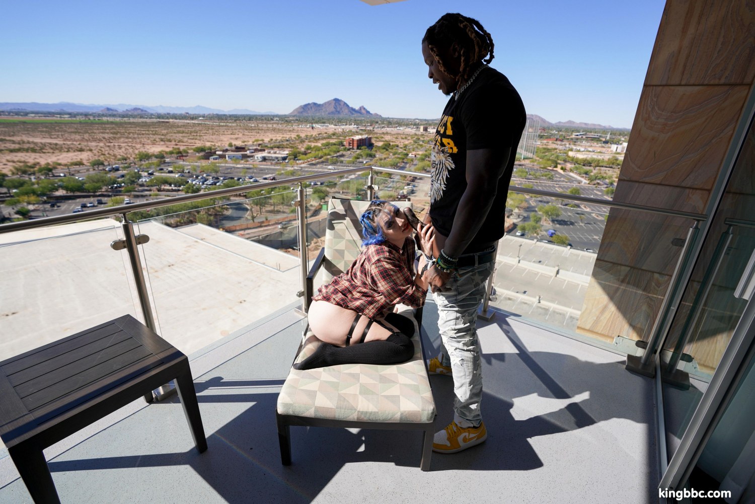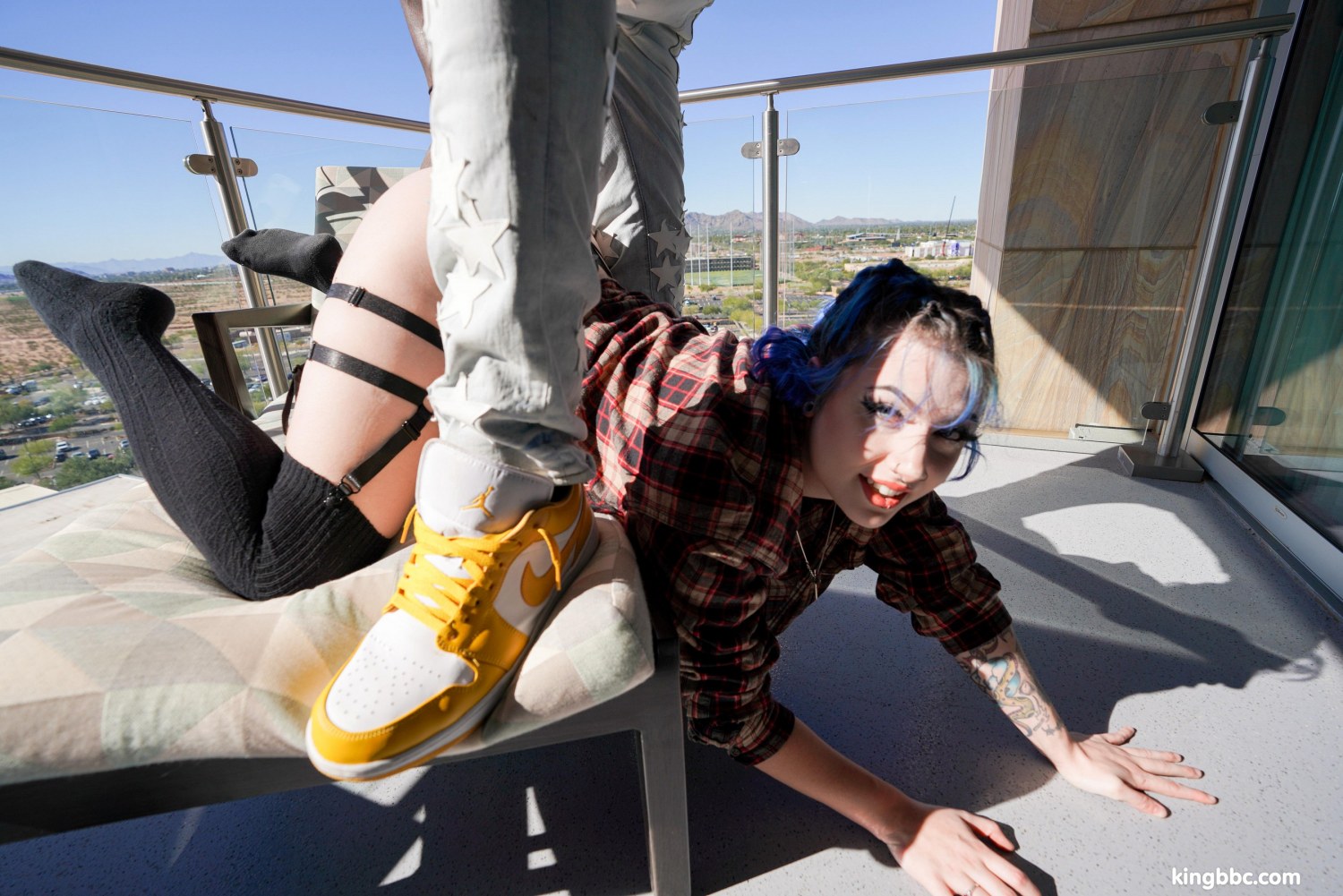Xoe Grim In Black Stockings Gets Fucked On The Balcony By Louie Smalls