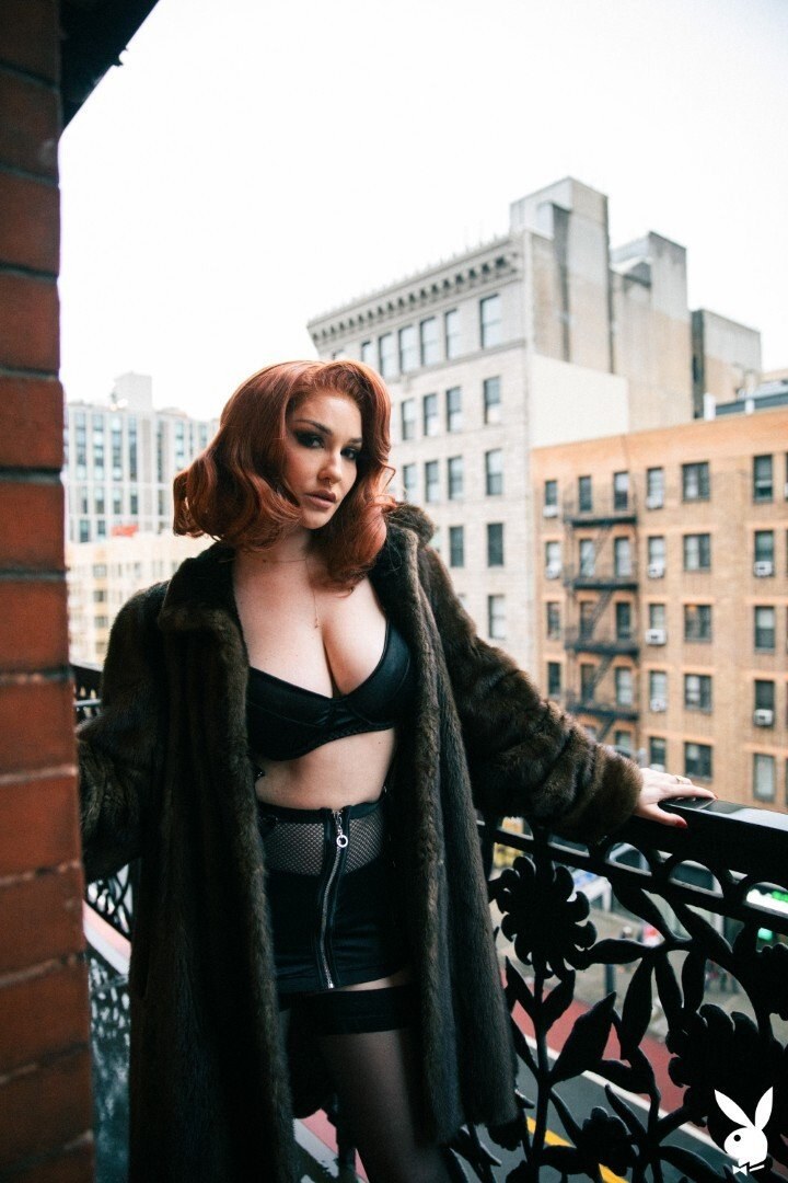 Busty Redhead Babe Skye Blue Teases In Black Lingerie With Stockings And High Heels